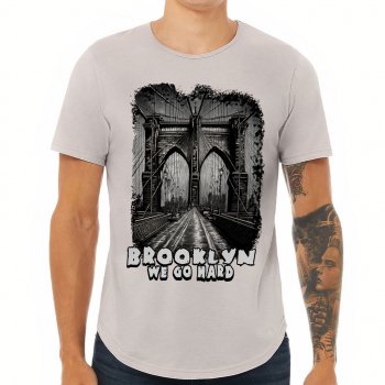 Brooklyn We Go Hard Curved Hem T-Shirt – Bridge T-Shirt – Themed Curved Hem Tee